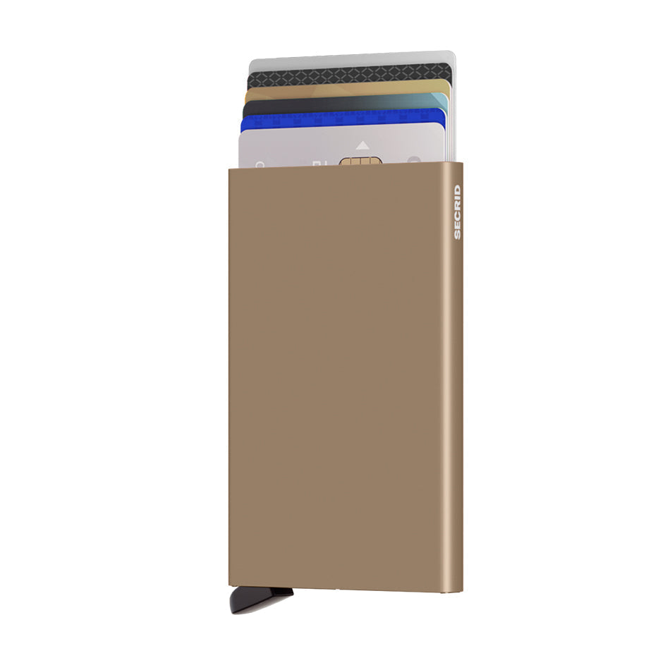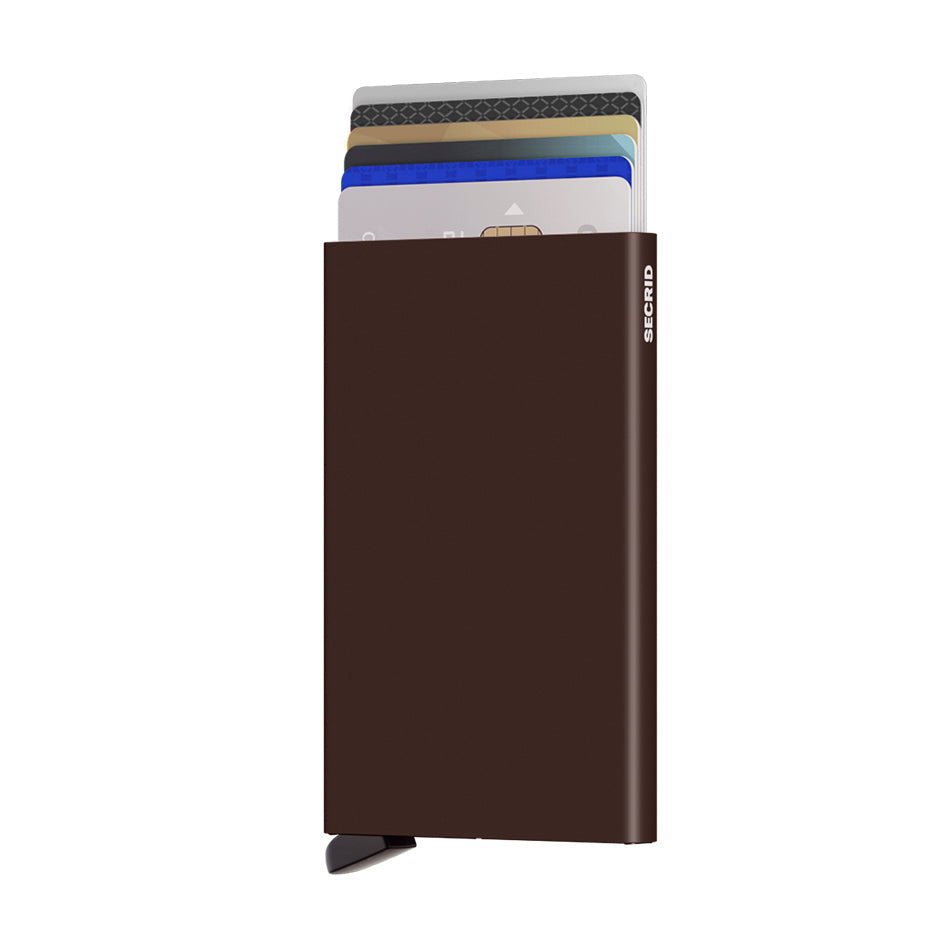 The most minimal wallet and the heart of all Secrid products. The patented mechanism allows you to slide out your cards with one simple motion, ready for immediate use. The aluminium casing protects from bending, breaking and unwanted wireless communication (RFID safe).