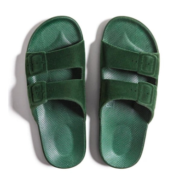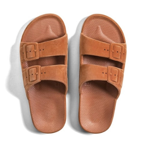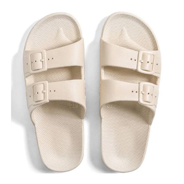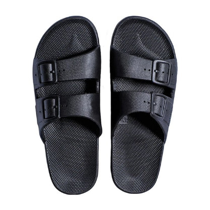 FREEDOM MOSES MENS SLIDE At Freedom Moses we're all about celebrating summer 365 days a year. From am to pm, our vegan slides are injected with air so you feel like you re walking on a cloud. Whether chilling at the beach or just hanging out, we re also available for your whole crew, from kids slides to women's slides and men s slides, if you re into prints, glitters, metallics or basic colors we ve got you covered. Features : Sustainable injected PCU Fixed buckles Waterproof Washable Non-slippery Milk & Honey scented Collection: BasicFREEDOM MOSES WOMENS SLIDE At Freedom Moses we're all about celebrating summer 365 days a year. From am to pm, our vegan slides are injected with air so you feel like you re walking on a cloud. Whether chilling at the beach or just hanging out, we re also available for your whole crew, from kids slides to women's slides and men s slides, if you re into prints, glitters, metallics or basic colors we ve got you covered. Features : Sustainable injected PCU Fixed buckles Waterproof Washable Non-slippery Milk & Honey scented Collection: Basic