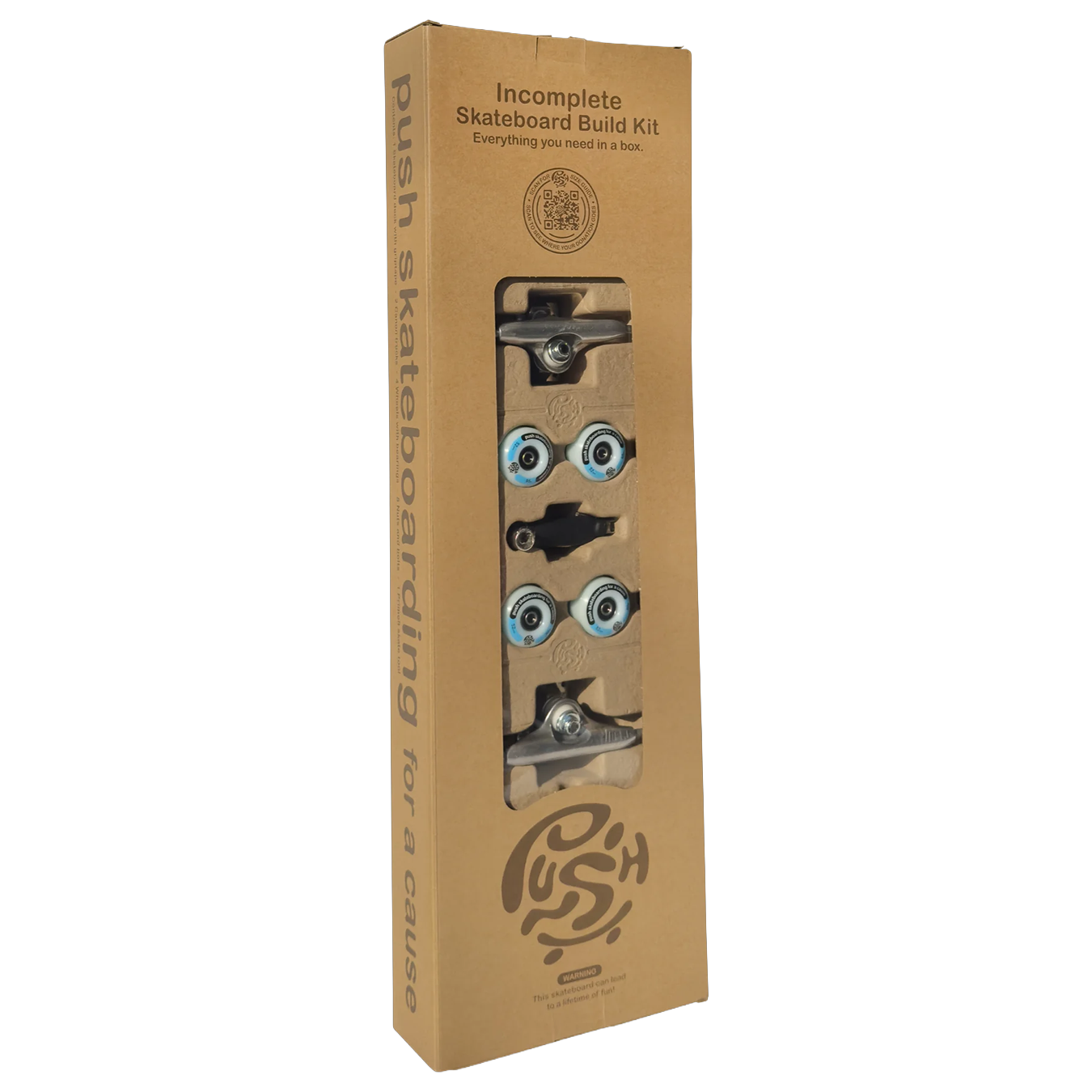 Pre packaged skateboard in a gift box. Comes with all components and a skate tool for easy assembly.