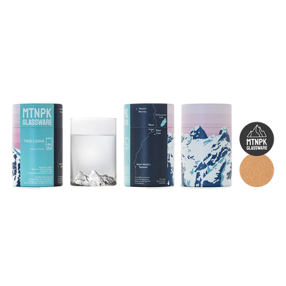 Perched majestically over North Vancouver, the Two Lions, or Ch’ích’iyúy Elx̱wík–n as known in the Squamish language, stand as silent guardians of the land. These iconic peaks, visible from much of the greater Vancouver area, have long captured the imagination and reverence of those who gaze upon them. Our Two Lions glassware is a celebration of these magnificent mountains, offering a piece of their timeless allure to bring into your home.